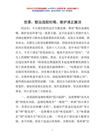 党课:整治违规吃喝、维护清正廉洁