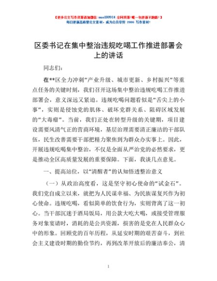 / 区委书记在集中整治违规吃喝工作推进部署会上的讲话