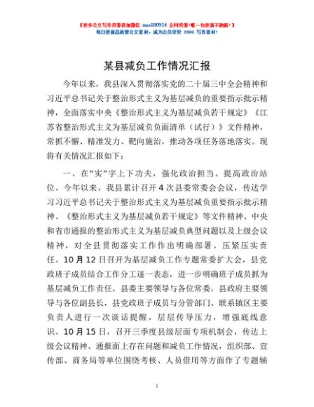 / 某县减负工作情况汇报