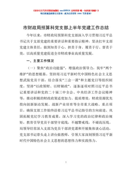 / 市财政局预算科党支部上半年党建工作总结