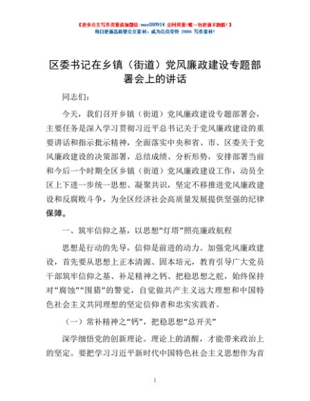 / 区委书记在乡镇(街道)党风廉政建设专题部署会上的讲话