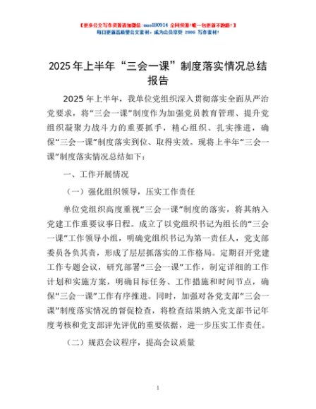 / 2025 年上半年“三会一课”制度落实情况总结报告