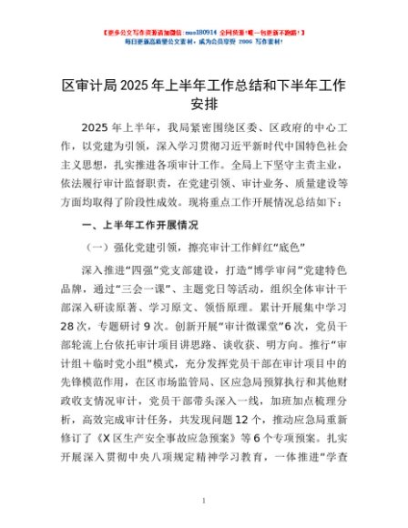 / 区审计局2025年上半年工作总结和下半年工作安排