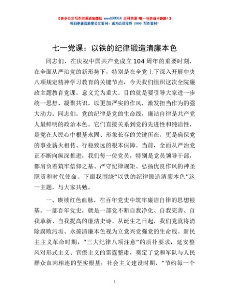 / 七一党课:以铁的纪律锻造清廉本色