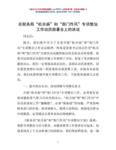 / 在税务局“机关病”和“衙门作风”专项整治工作动员部署会上的讲话