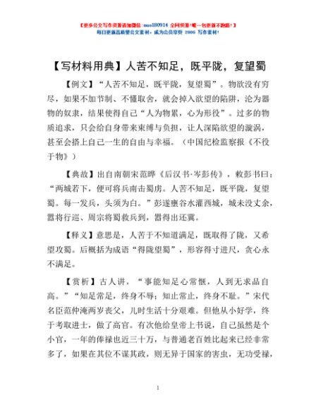 / 【写材料用典】人苦不知足,既平陇,复望蜀