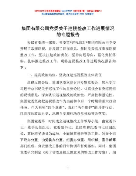 / 集团有限公司党委关于巡视整改工作进展情况的专题报告