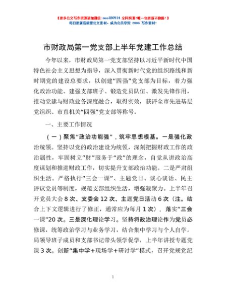 / 市财政局第一党支部上半年党建工作总结