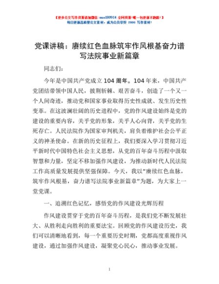 / 党课讲稿:赓续红色血脉筑牢作风根基 奋力谱写法院事业新篇章