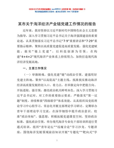 / 某市关于海洋经济产业链党建工作情况的报告