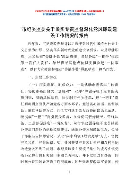 / 市纪委监委关于做实专责监督深化党风廉政建设工作情况的报告