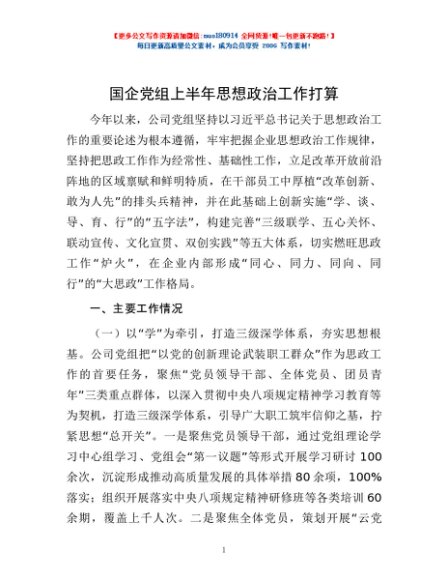 / 国企党组上半年思想政治工作打算