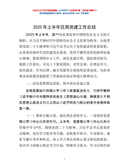 / 2025年上半年区局党建工作总结