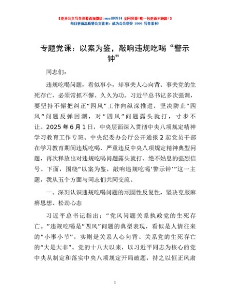 / 专题党课:以案为鉴,敲响违规吃喝“警示钟”