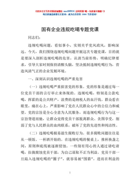 / 国有企业违规吃喝专题党课