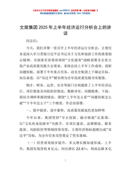 / 文旅集团2025年上半年经济运行分析会上的讲话