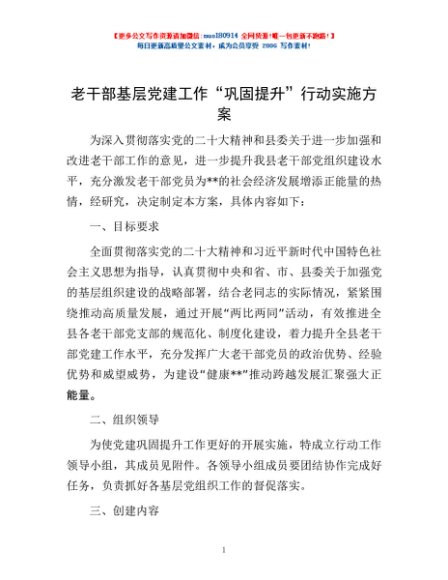 / 老干部基层党建工作“巩固提升”行动实施方案