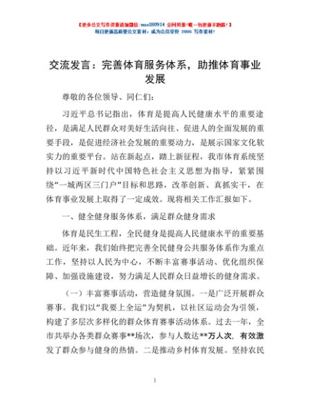 / 交流发言:完善体育服务体系,助推体育事业发展