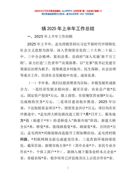 / 镇2025年上半年工作总结