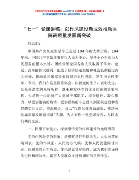 / “七一”党课讲稿:以作风建设新成效推动医院高质量发展新突破