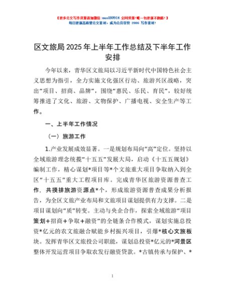 / 区文旅局2025年上半年工作总结及下半年工作安排