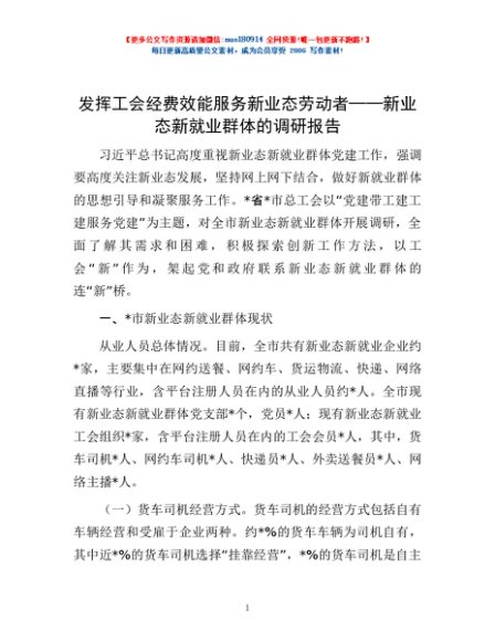 / 发挥工会经费效能 服务新业态劳动者——新业态新就业群体的调研报告