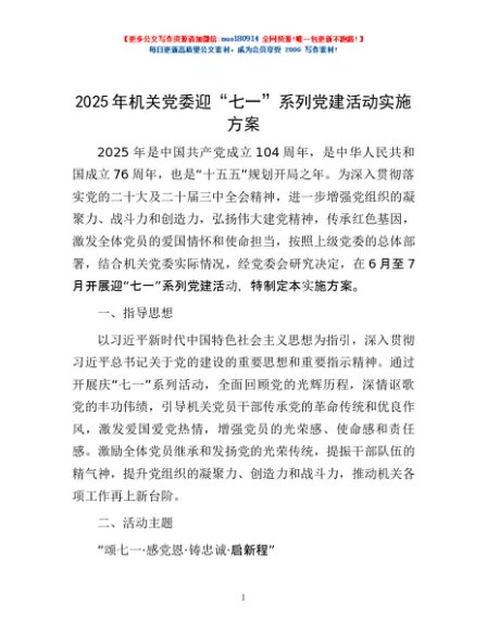 / 2025年机关党委迎“七一”系列党建活动实施方案