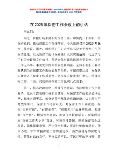 / 在2025年保密工作会议上的讲话