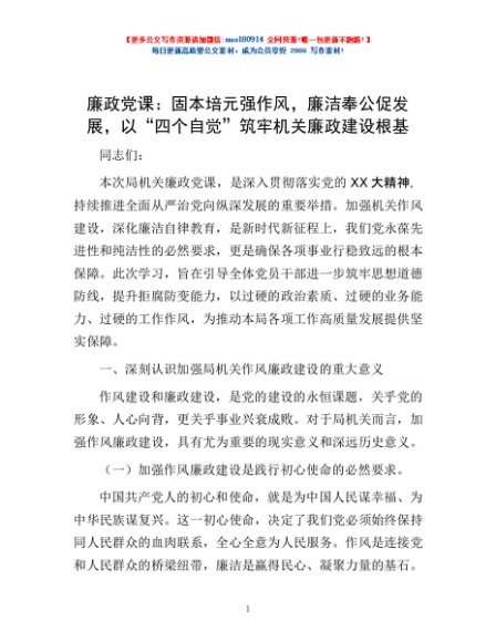 廉政党课:固本培元强作风,廉洁奉公促发展,以“四个自觉”筑牢机关廉政建设根基