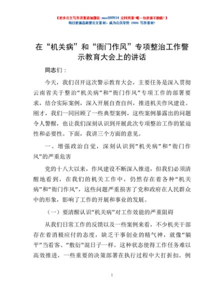 / 在“机关病”和“衙门作风”专项整治工作警示教育大会上的讲话
