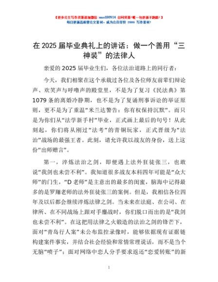 / 在2025届毕业典礼上的讲话:做一个善用“三神装”的法律人
