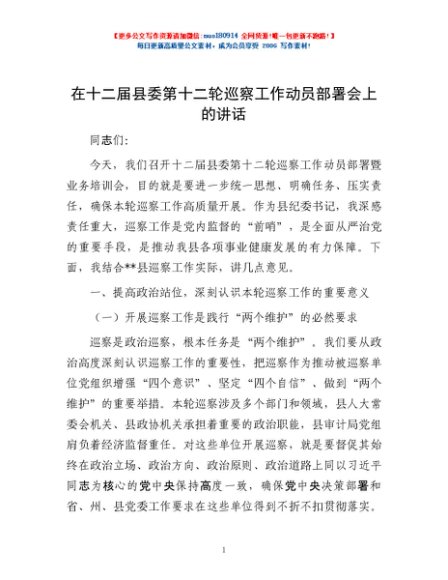 / 在十二届县委第十二轮巡察工作动员部署会上的讲话