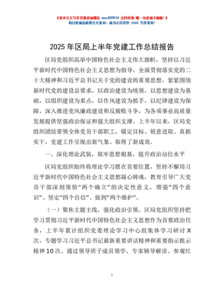 / 2025年区局上半年党建工作总结报告