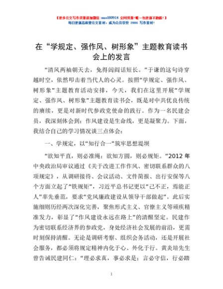 在“学规定、强作风、树形象”主题教育读书会上的发言