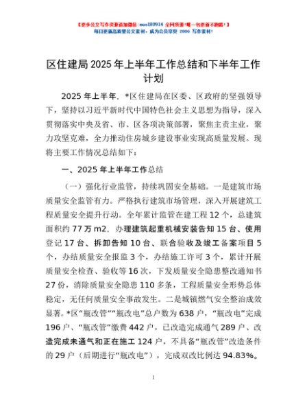/ 区住建局2025年上半年工作总结和下半年工作计划