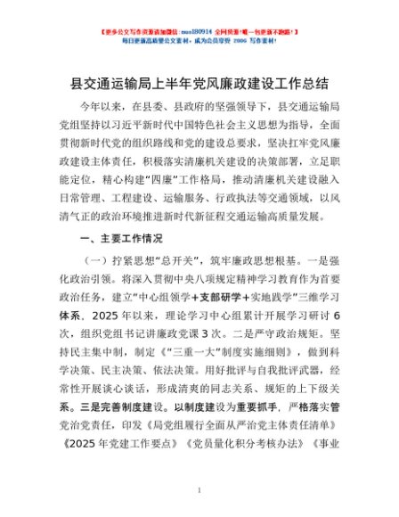 / 县交通运输局上半年党风廉政建设工作总结