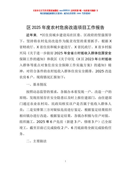 / 区2025年度农村危房改造项目工作报告