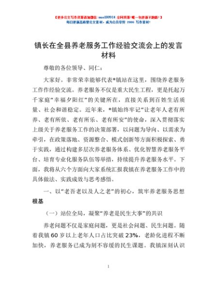 / 镇长在全县养老服务工作经验交流会上的发言材料