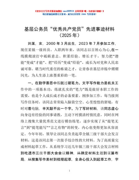 / 基层公务员“优秀共产党员”先进事迹材料(2025年)