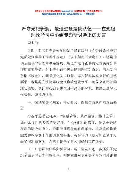 / 严守党纪新规,锻造过硬法院队伍——在党组理论学习中心组专题研讨会上的发言