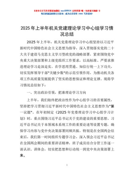 / 2025年上半年机关党建理论学习中心组学习情况总结_20250624_084354