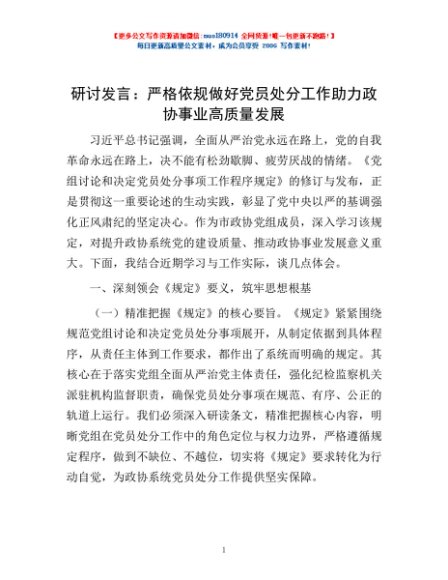 研讨发言:严格依规做好党员处分工作 助力政协事业高质量发展