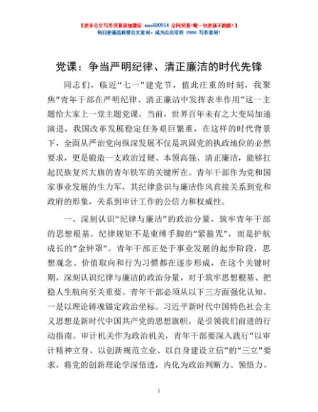 / 党课:争当严明纪律、清正廉洁的时代先锋