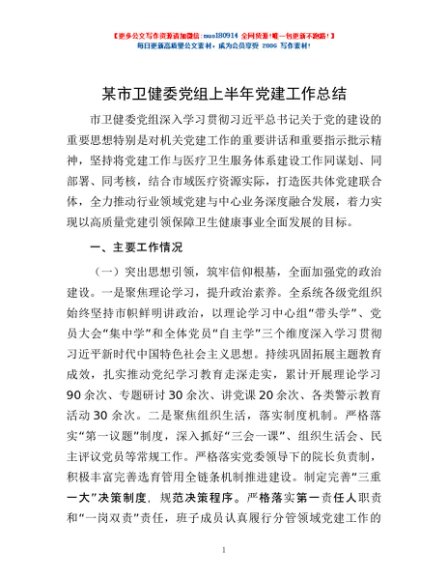 / 某市卫健委党组上半年党建工作总结