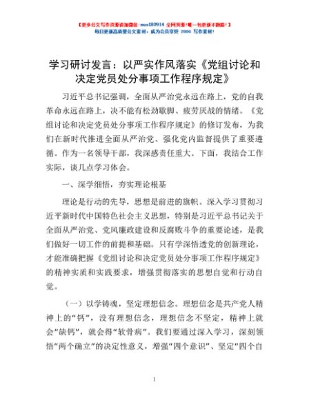 / 学习研讨发言:以严实作风落实《党组讨论和决定党员处分事项工作程序规定》