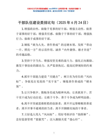 / 干部队伍建设类排比句(2025年6月24日)