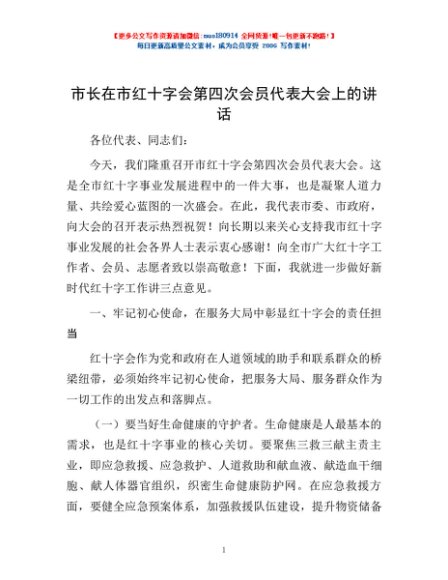 / 市长在市红十字会第四次会员代表大会上的讲话
