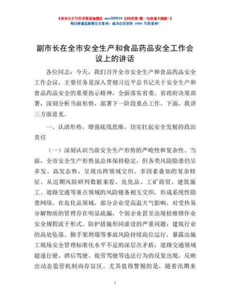 / 副市长在全市安全生产和食品药品安全工作会议上的讲话