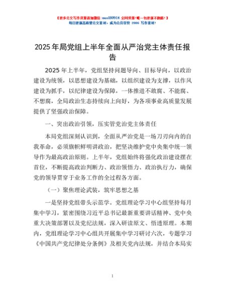 / 2025年局党组上半年全面从严治党主体责任报告