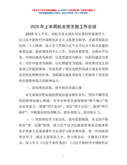 / 2025年上半局机关党支部工作总结